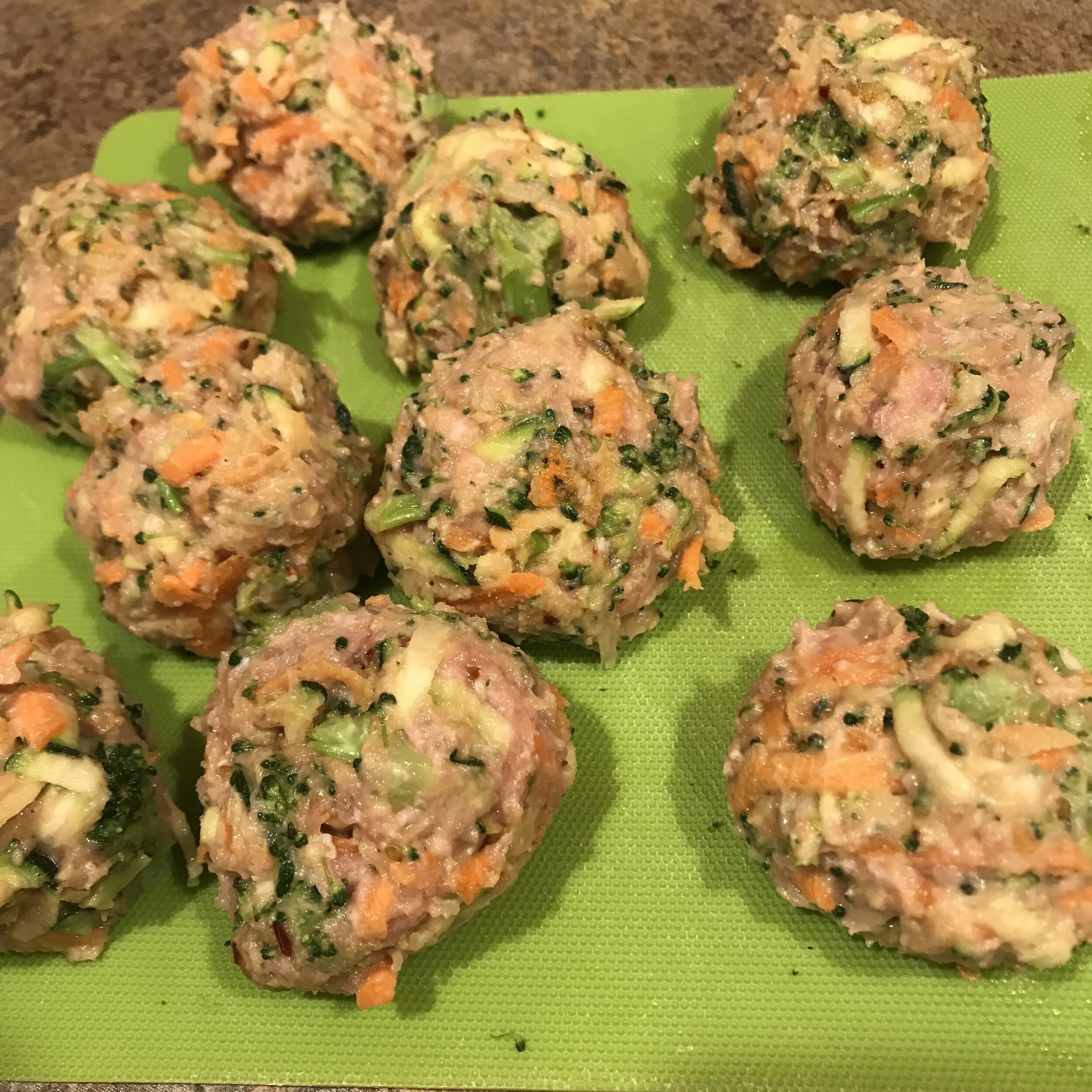 Follow LoLo’s simple directions for Salmon bites here (because I had canned Salmon, I formed them into Salmon cakes)