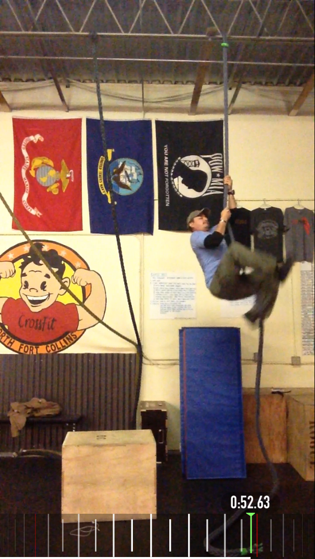 To learn this method, move back again the the seated position on the box. You want to drill picking up and releasing the foot lock repeatedly before attempting to climb. The only difference between this lock and the Emergency Lock is an out and around wrap of the rope, hence the name(s). You're going to pick up the running end of the rope with the top of your non-dominant(dumb) foot and swing your dominant (ball-kicking foot) around the rope and press the rope down next to your dumb foot while slightly raising your dumb foot. The key is keeping the feet level to maintain the bight.