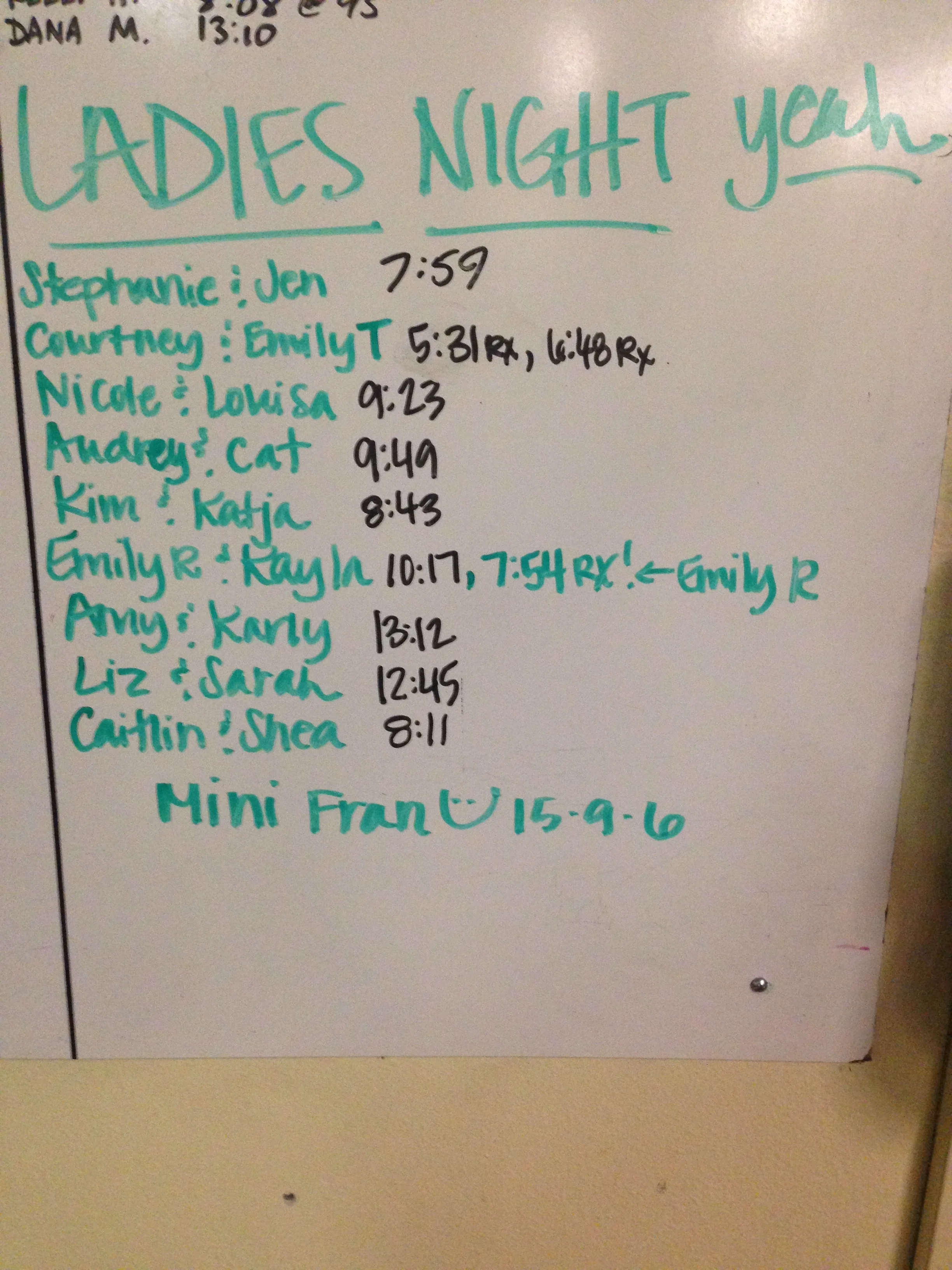 Ladies' Night 140416 Mini Team Fran15-12-9ThrustersPull-ups Michael ReynoldsApril 16, 2014Comment Facebook0 Twitter 0 Likes