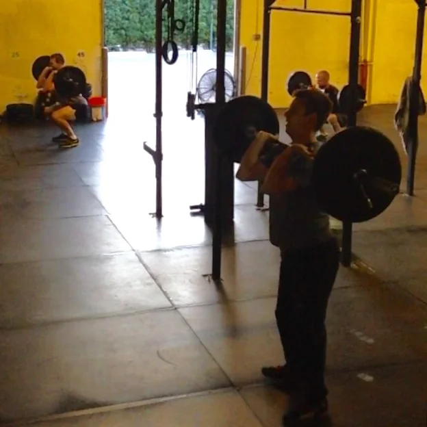 10/1 Hang squat cleans M:95 F:65/Burpee