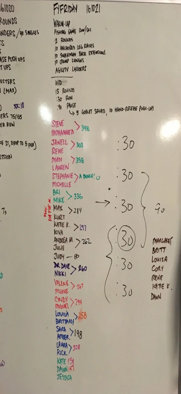 :90 pause with 5 goblet squats 55/35 and 10 push-ups